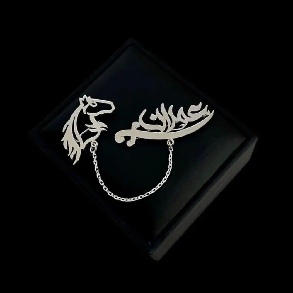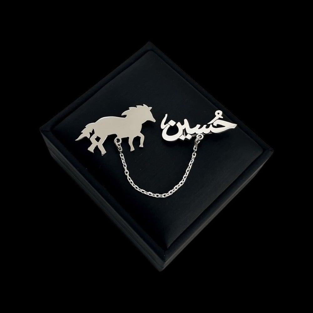 لطفل أنيق ومتألق منذ الصغر بروش أطفال بالاسم عالي الجودة مع تصميم حصان ومتوفر بطلاء ذهبي أو فضي أصلي
